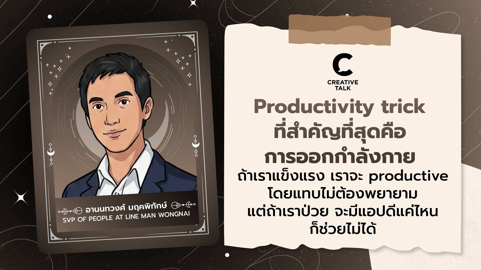 38. Productivity trick ที่สำคัญที่สุดคือการออกกำลังกาย ถ้าเราแข็งแรง เราจะ productive โดยแทบไม่ต้องพยายาม แต่ถ้าเราป่วย จะมีแอปดีแค่ไหนก็ช่วยไม่ได้