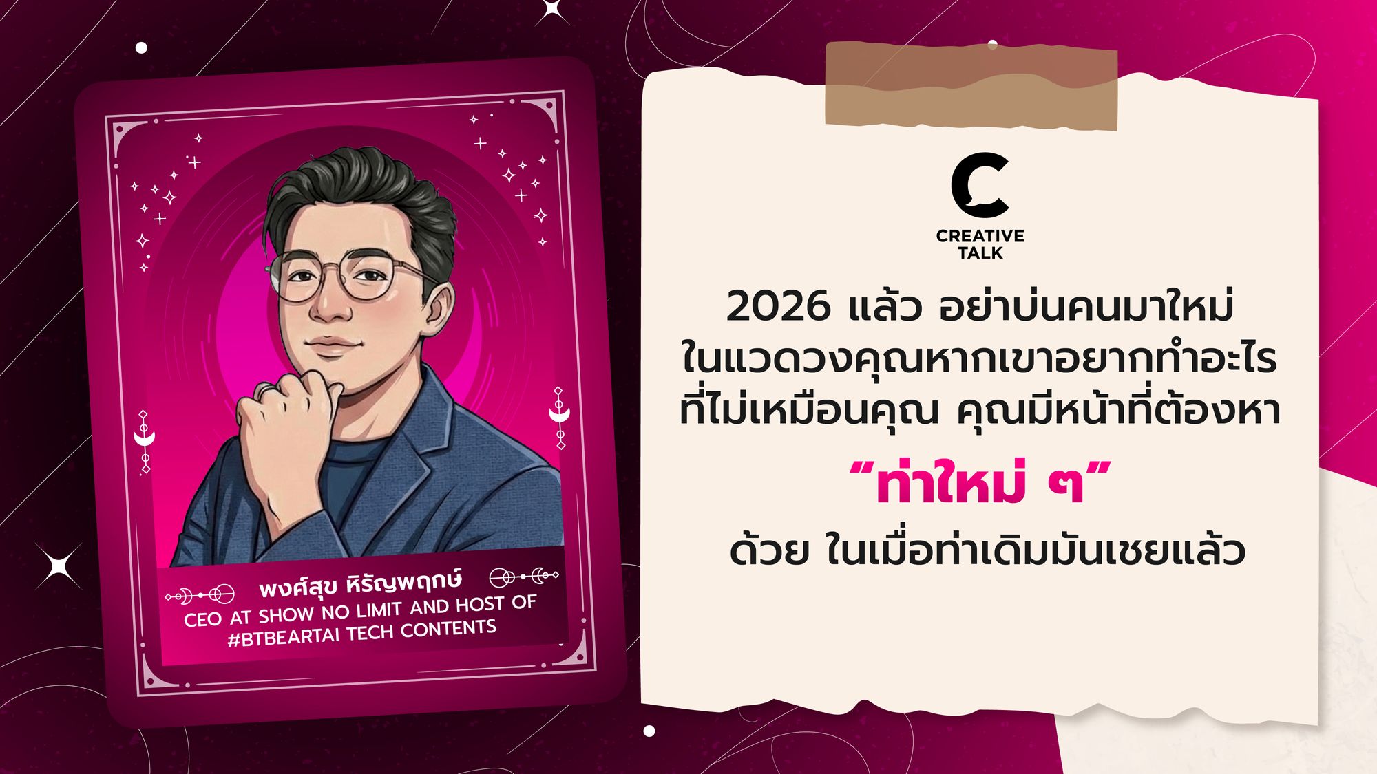 พงศ์สุข หิรัญพฤกษ์ (CEO at Show No Limit and Host of #BTbeartai Tech Contents)