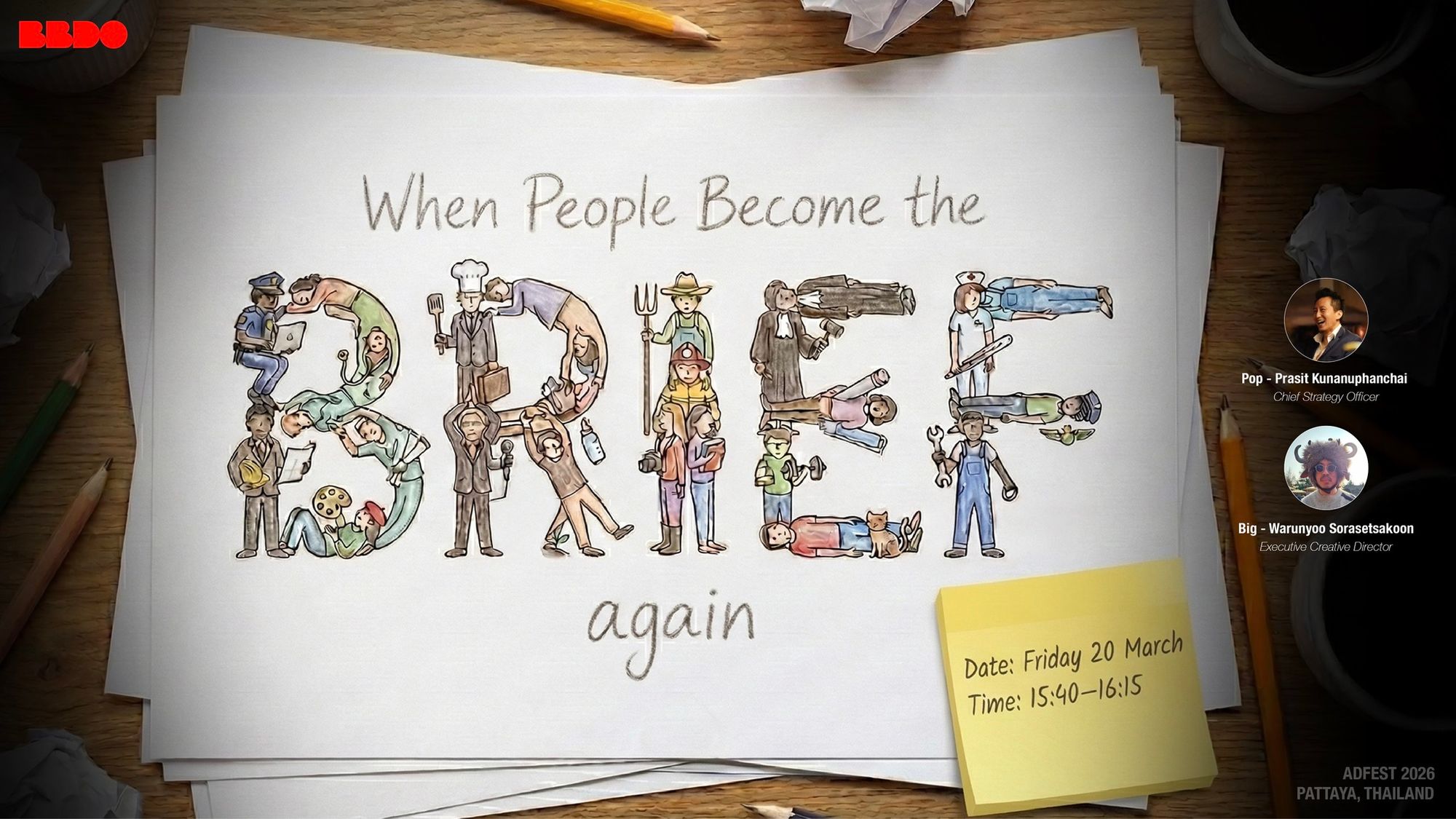 โดย Warunyoo “Big” Sorasetsakoon, Executive Creative Director, BBDO Bangkok, Bangkok และ Prasit “Pop” Kunanuphanchai, Chief Strategy Officer, BBDO Bangkok, Bangkok