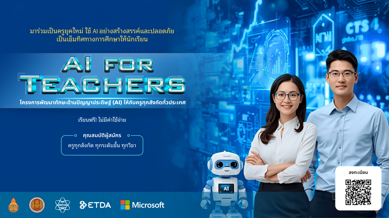 สพฐ. สอศ. สสวท. ETDA และไมโครซอฟท์ ผนึกความร่วมมืออัพสกิล AI แห่งอนาคต จัดหลักสูตรอบรมครูทั่วประเทศ ในโครงการ AI for Teachers