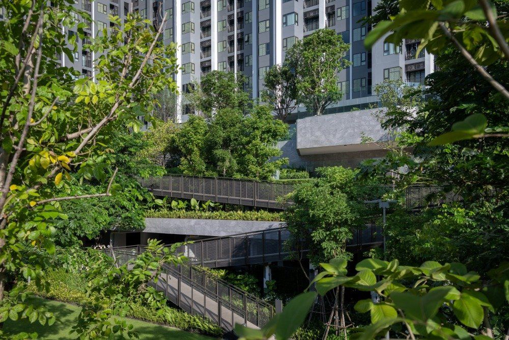 ภูมิทัศน์ของโครงการที่ประกอบด้วยเครือข่ายสวน ทางเดิน และสระว่ายน้ำ ได้มอบพื้นที่สำหรับการออกกำลังกายและผ่อนคลายแก่ลูกบ้าน 1,971 ยูนิต ขณะเดียวกันก็ส่งเสริมระบบนิเวศในเมืองที่ดึงดูด นก ผีเสื้อ และแมลงต่างๆ ซึ่งโครงการนี้สำเร็จได้ด้วยการทำงานร่วมกันของหลายภาคส่วน ทั้ง AP Design Lab สถาปัตยกรรม ภูมิสถาปัตยกรรม และวิศวกรรม