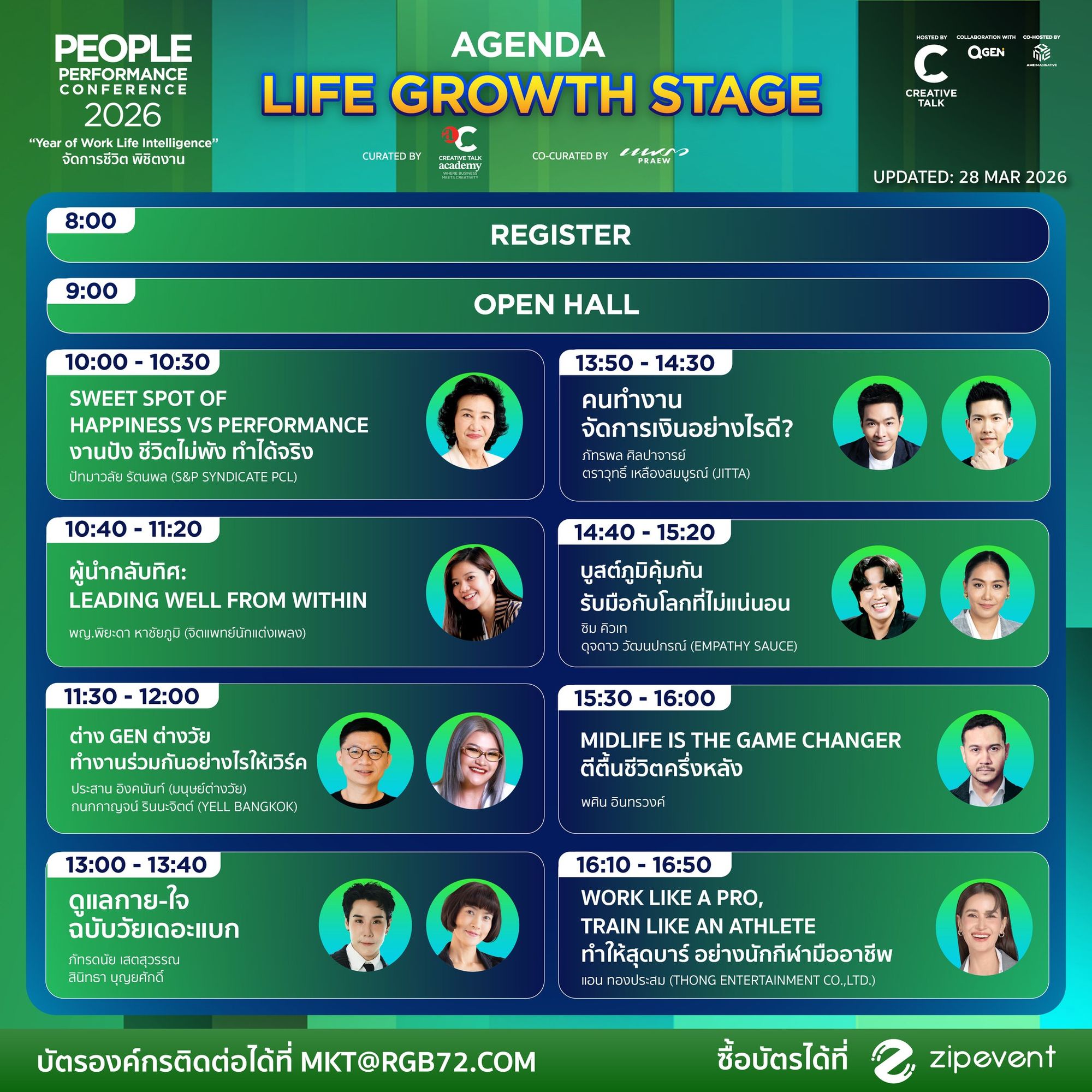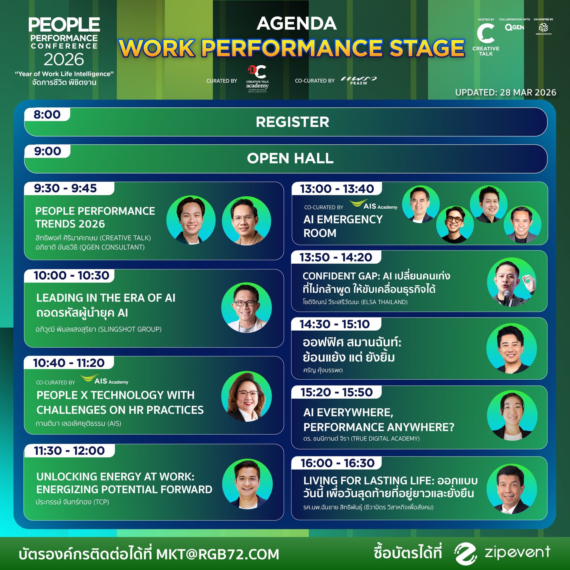 คำตอบทั้งหมดอยู่ในงาน PEOPLE PERFORMANCE CONFERENCE 2026 งาน Conference แห่งปีที่จัดโดย CREATIVE TALK ร่วมกับ AME IMAGINATIVE และ QGEN Consultant ปีนี้มาในธีมของ “Year of Work Life Intelligence” เมื่อโลกการทำงานวันนี้ไม่ได้ต้องการคนที่เก่งขึ้นเท่านั้น แต่ต้องการคนที่ “คิดเป็น จัดการชีวิตเป็น และทำงานร่วมกับความเปลี่ยนแปลงเป็น”