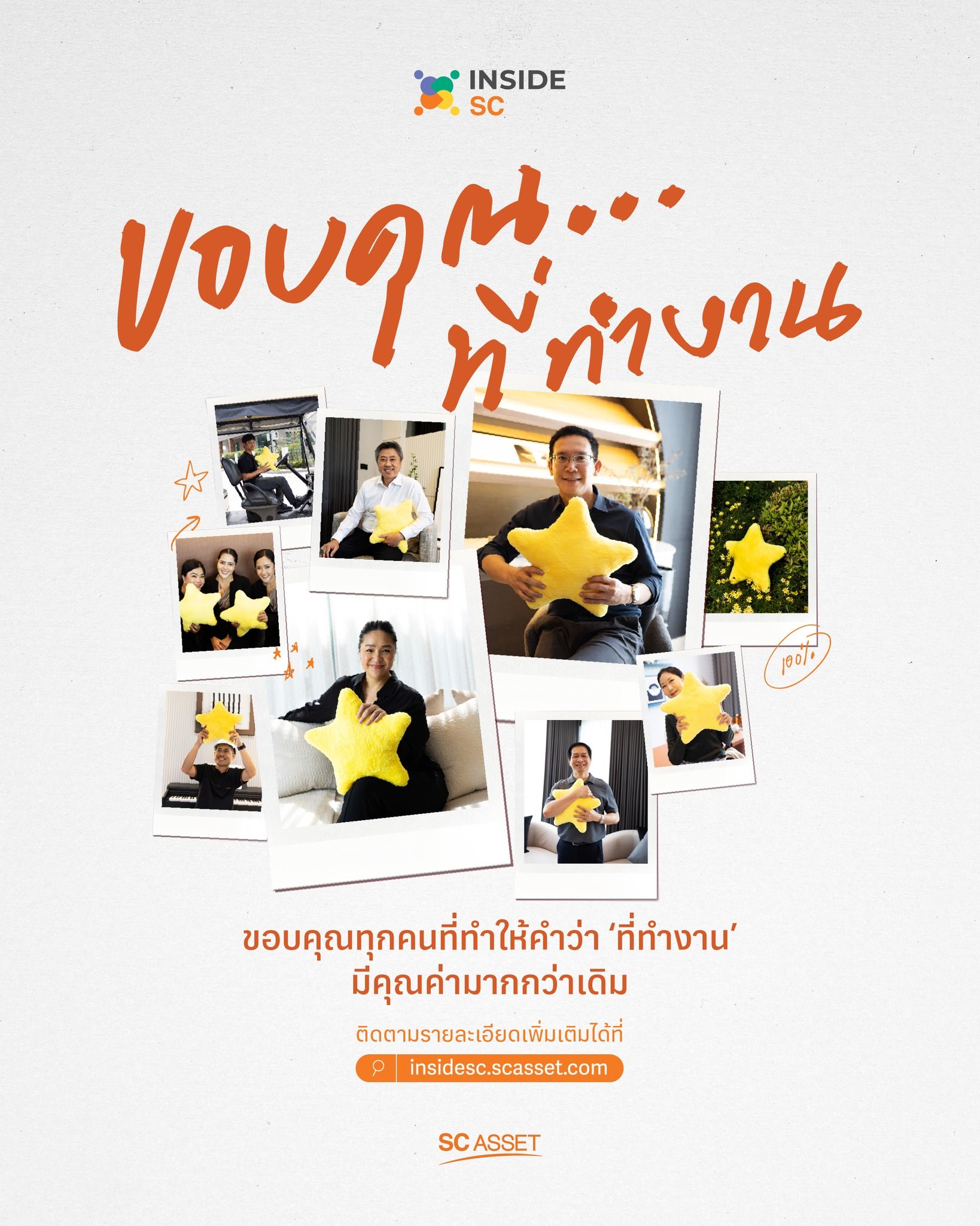 บางครั้ง “ที่ทำงาน” ที่ดี ไม่ได้เงียบสงบเสมอไป มันอาจเสียงดังด้วยไอเดีย ข้อโต้แย้ง และเดดไลน์ แต่สิ่งที่ทำให้ที่แห่งนั้นมีหัวใจ คือวัฒนธรรมที่บอกกันทุกวันว่า “ฉันเห็นคุณ และ ขอบคุณ” SC Asset เลือกสร้างวัฒนธรรมแบบนั้นอย่างตั้งใจ ผ่าน Inside SC และแคมเปญ ขอบคุณ…ที่ทำงาน เพื่อจุดประกายให้คนทำงานเห็นคุณค่ากันและกัน ส่งต่อ Gratitude Mindset เป็นกำลังใจในวันที่เหนื่อยล้า และส่งต่อไวบ์ดี ๆ ร่วมกัน