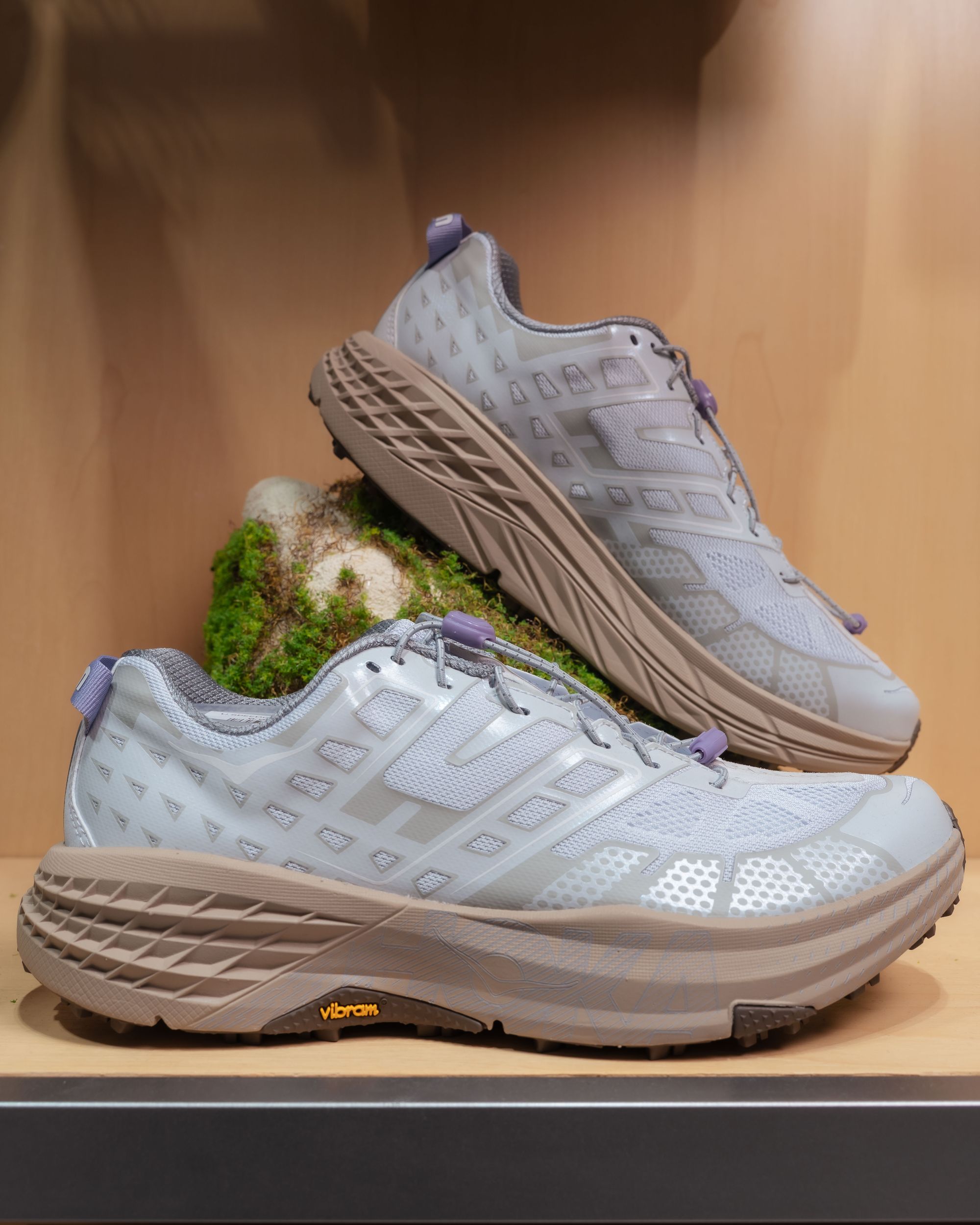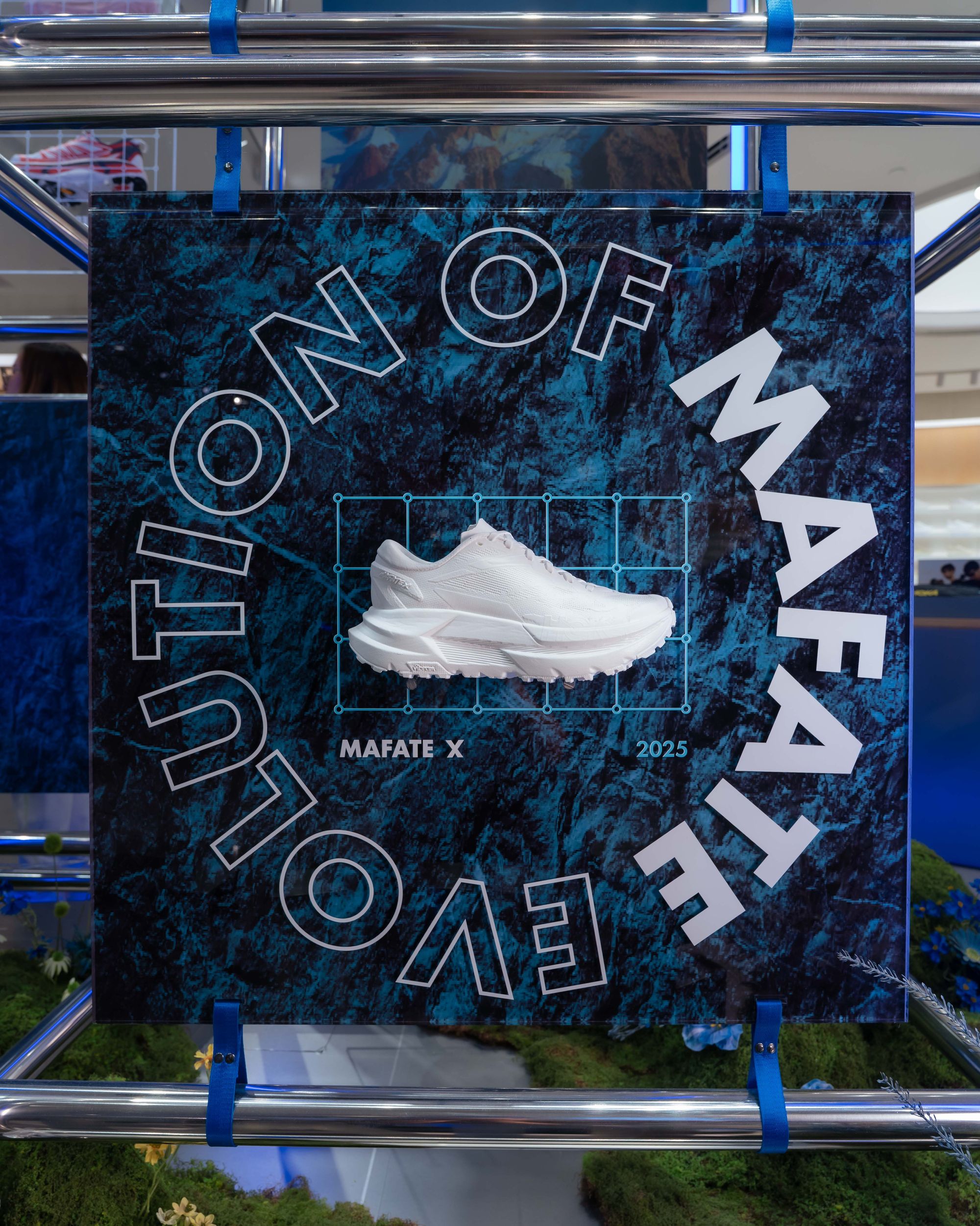 เพื่อให้เข้ากับดีไซน์ร้านผ่านโทนวัสดุธรรมชาติ และเส้นสายที่ให้ความรู้สึกพริ้วไหว มีชีวิตชีวา พร้อมจัดแสดง คอลเลกชัน Mafate Family ซึ่งเป็นสัญลักษณ์ของแนวคิด Trail-to-Street ที่ผสานเทคโนโลยีรองเท้าวิ่งเทรลเข้ากับดีไซน์สำหรับชีวิตในเมืองได้อย่างลงตัว