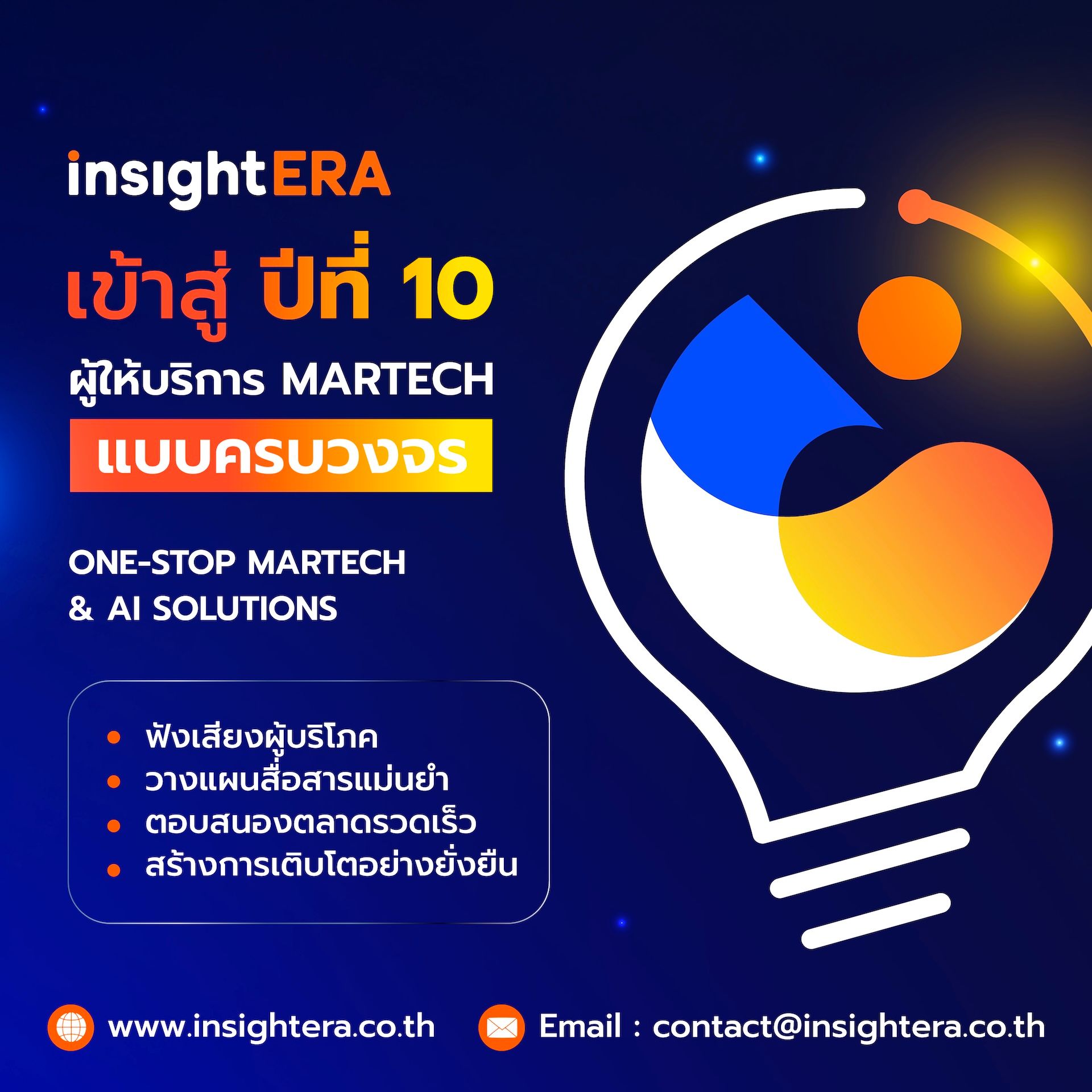 ในจังหวะที่โลกกำลังเร่งเข้าสู่ยุคของ Generative AI…InsightERA ผู้เชี่ยวชาญด้าน MarTech และ Data Intelligence ของไทย กำลังก้าวสู่ปีที่ 10 ด้วยเป้าหมายใหม่ ทำให้ทุกองค์กรใช้ AI ได้อย่างชาญฉลาด ปลอดภัย และมีบริบทของตัวเอง