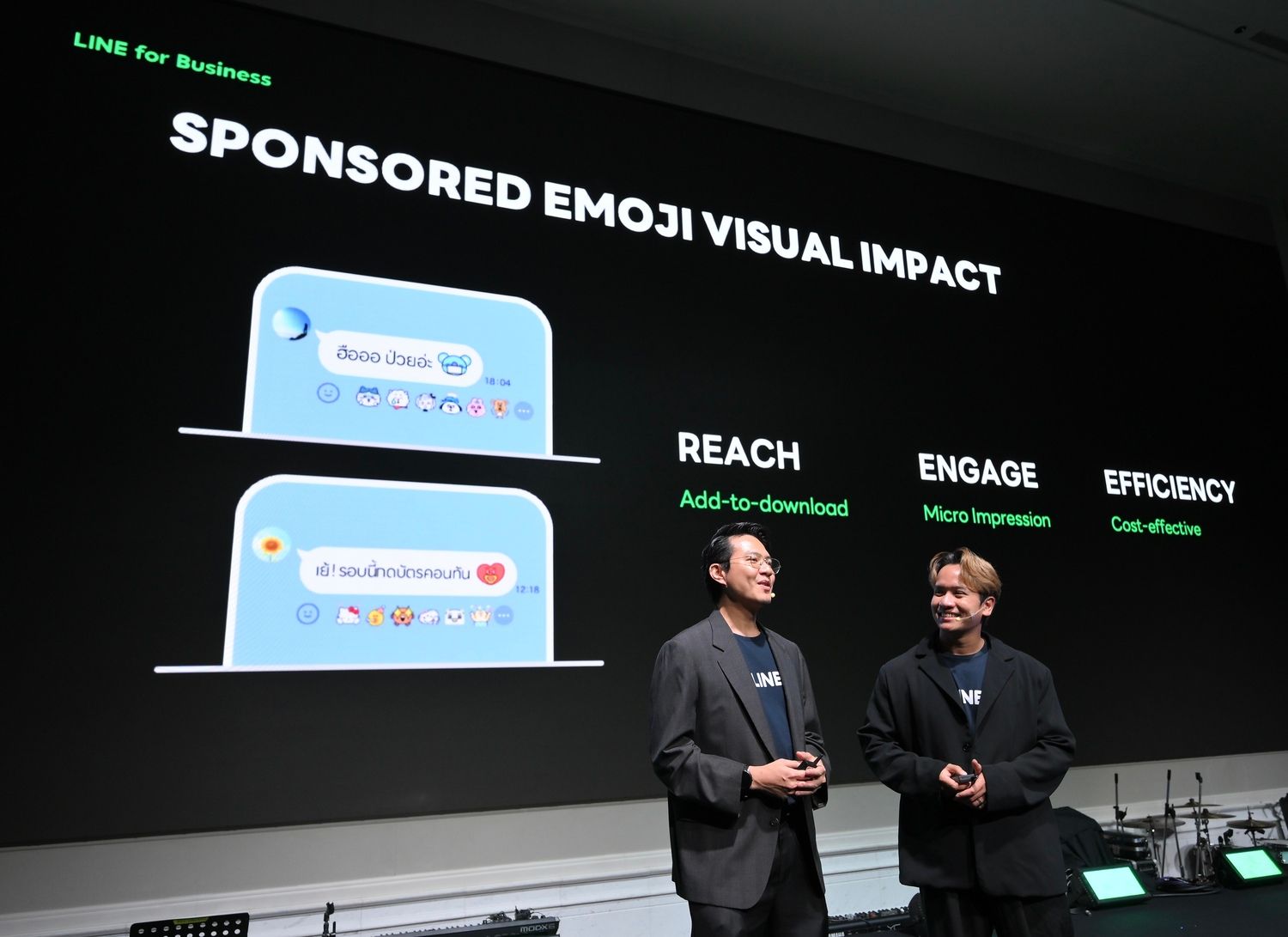 LINE Emoji ต่อยอดพลังของการสื่อสาร โดยพบว่า ผู้ใช้งานโดยเฉพาะในกลุ่มคนรุ่นใหม่มีการใช้งาน LINE Emoji เพิ่มมากขึ้น เนื่องจากสามารถใช้งานได้หลากหลาย ทั้งส่งในแชทที่จะแสดงผลแตกต่างกันไป หรือใช้สำหรับ React กับประโยคสนทนาในแชทได้ อีกหนึ่งทางเลือกในการต่อยอดอัตลักษณ์หรือคาแรคเตอร์ของแบรนด์สอดแทรกเข้าไปในไลฟ์สไตล์ของผู้บริโภคได้อย่างเป็นธรรมชาติ ผ่าน Sponsored Emoji เพื่อสร้างการมีส่วนร่วม ความรู้สึกเชื่อมโยง และเข้าถึงผู้ใช้ในชีวิตประจำวัน