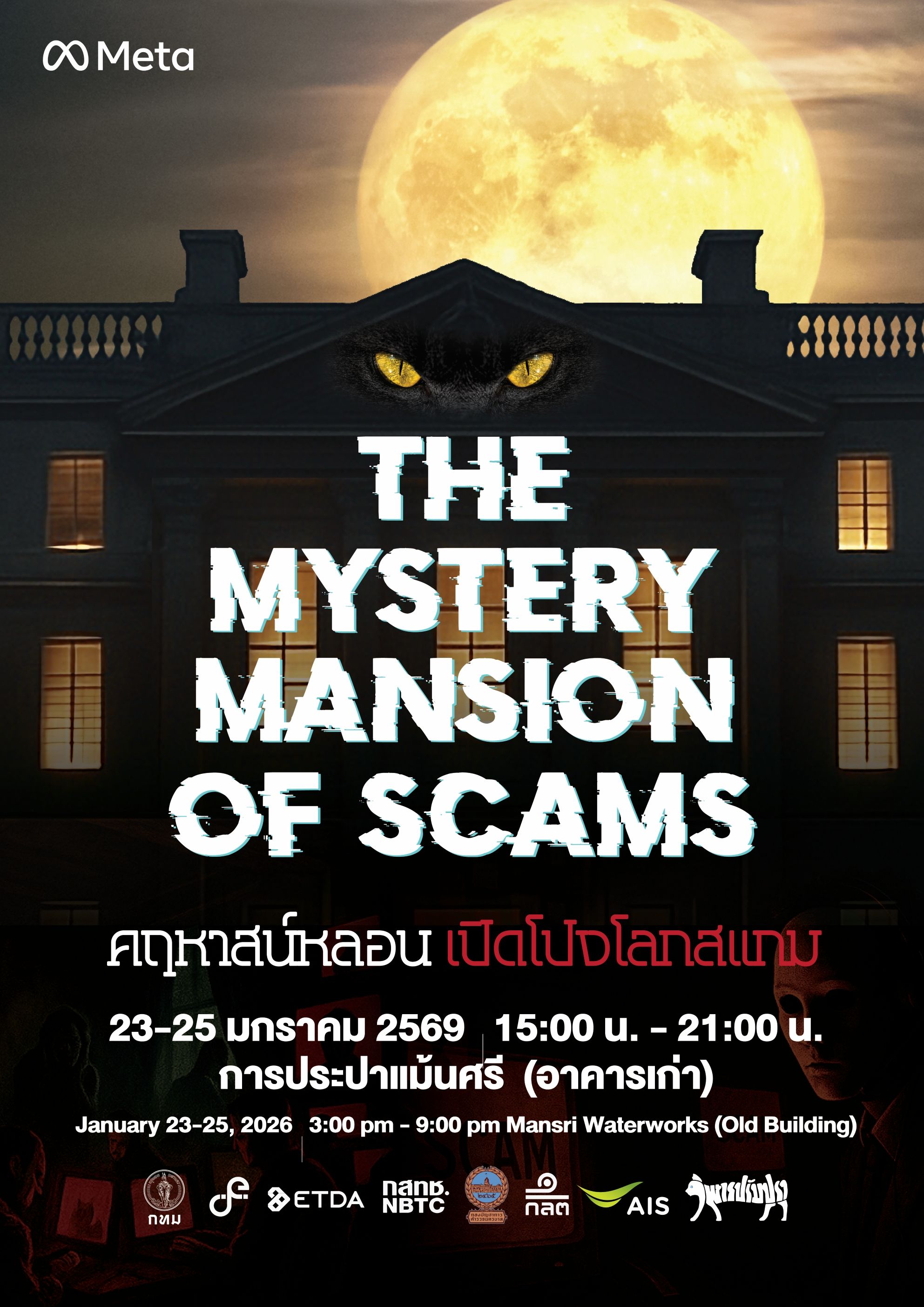 Meta เตรียมเปิดประสบการณ์แนวเกมไขปริศนาสุดอิมเมอร์ซีฟ The Mystery Mansion of Scams: คฤหาสน์หลอน เปิดโปงโลกสแกม ในวันที่ 23-25 มกราคม 2569 ณ การประปาแม้นศรี (หลังเก่า)