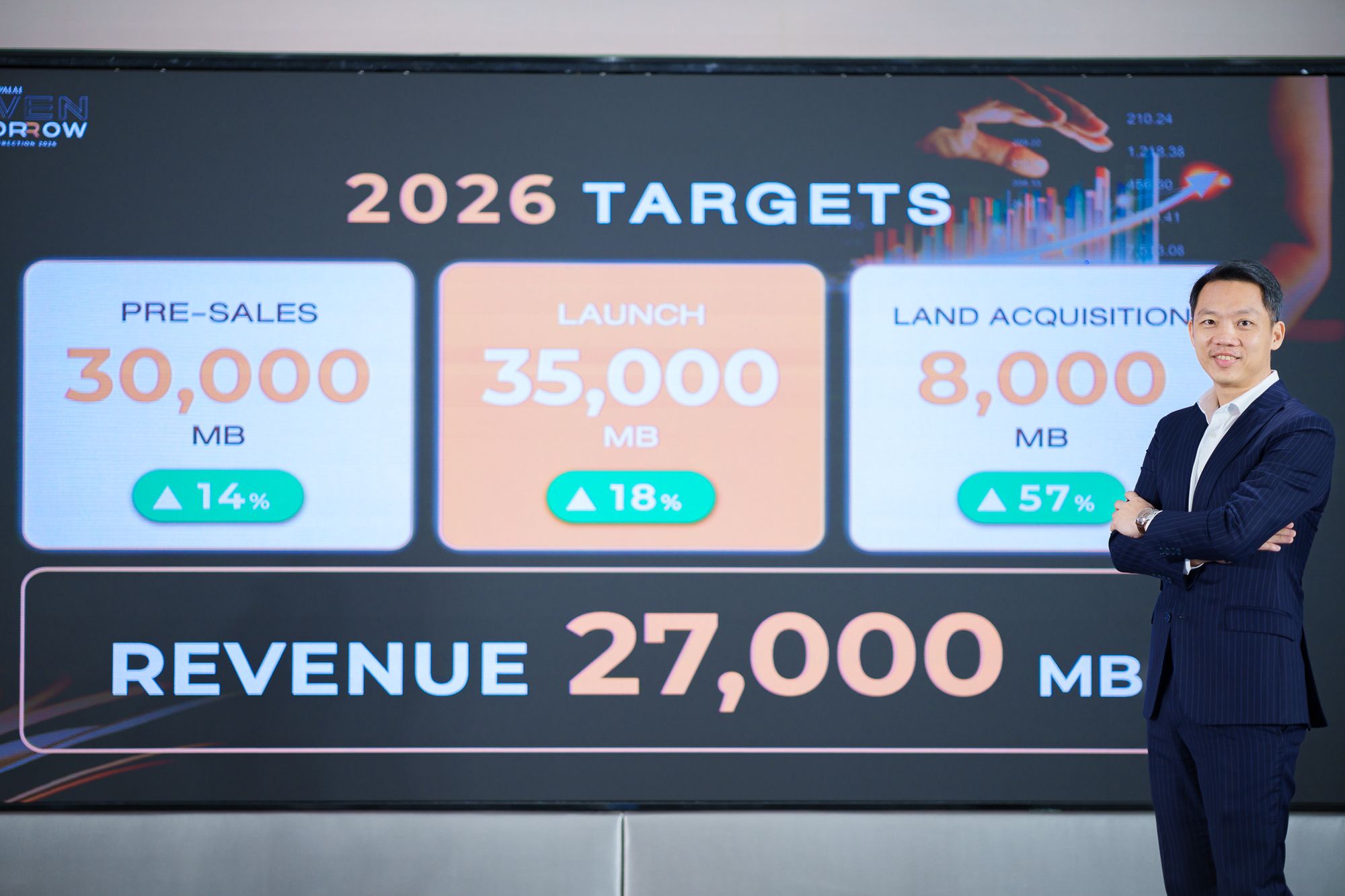 ขณะเดียวกันบริษัทฯ ตั้งเป้ารายได้รวมทั้งสองประเทศที่ 37,500 ล้านบาท โดยแบ่งเป็นตั้งเป้ารายได้ในประเทศไทย 27,000 ล้านบาท และเป้ารายได้จากประเทศออสเตรเลียประมาณ 10,500 ล้านบาท* โดยขับเคลื่อนการเติบโตอย่างสมดุล ผ่านการเพิ่มประสิทธิภาพโครงการพร้อมขาย เปิดตัวโครงการและขยายจังหวัดใหม่เพิ่มมากขึ้น รวมไปถึงการพัฒนาธุรกิจหลากมิติ ควบคู่ฐานะการเงินที่แข็งแกร่ง ด้วยสินทรัพย์รวมกว่า 98,000 ล้านบาท เครดิตเรตติ้งระดับ A ต่อเนื่อง 12 ปีซ้อน พร้อมต้นทุนทางการเงินต่ำ สะท้อนความพร้อมในการเติบโตอย่างมั่นคงและยั่งยืน