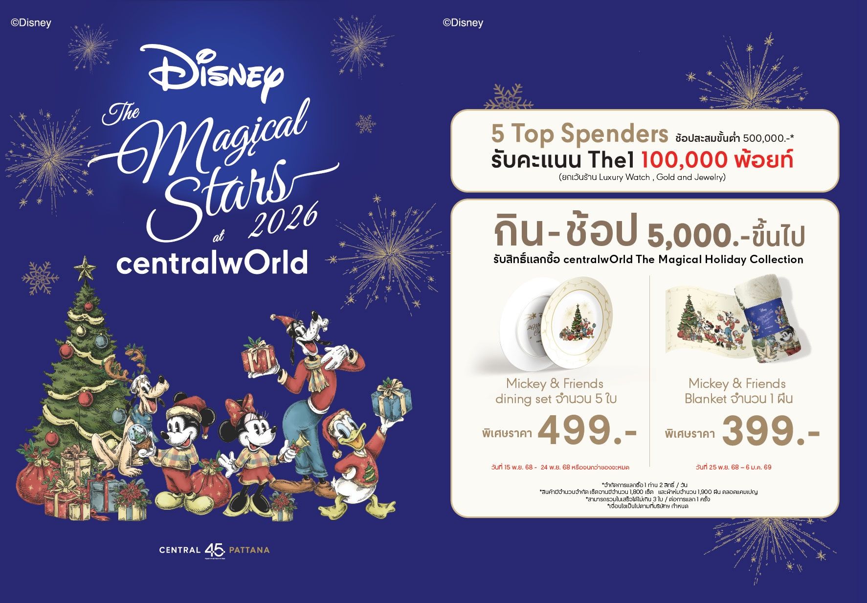 เริ่มแล้ว! กับงาน Disney The Magical Stars 2026 at centralwOrld ตั้งแต่วันที่ 14 พ.ย. 68 – 6 ม.ค. 69 เตรียมท่อง 7 โซนไฮไลท์ ที่จัดธีมตามตัวละครอันโด่งดังที่ได้รับความนิยม ได้แก่