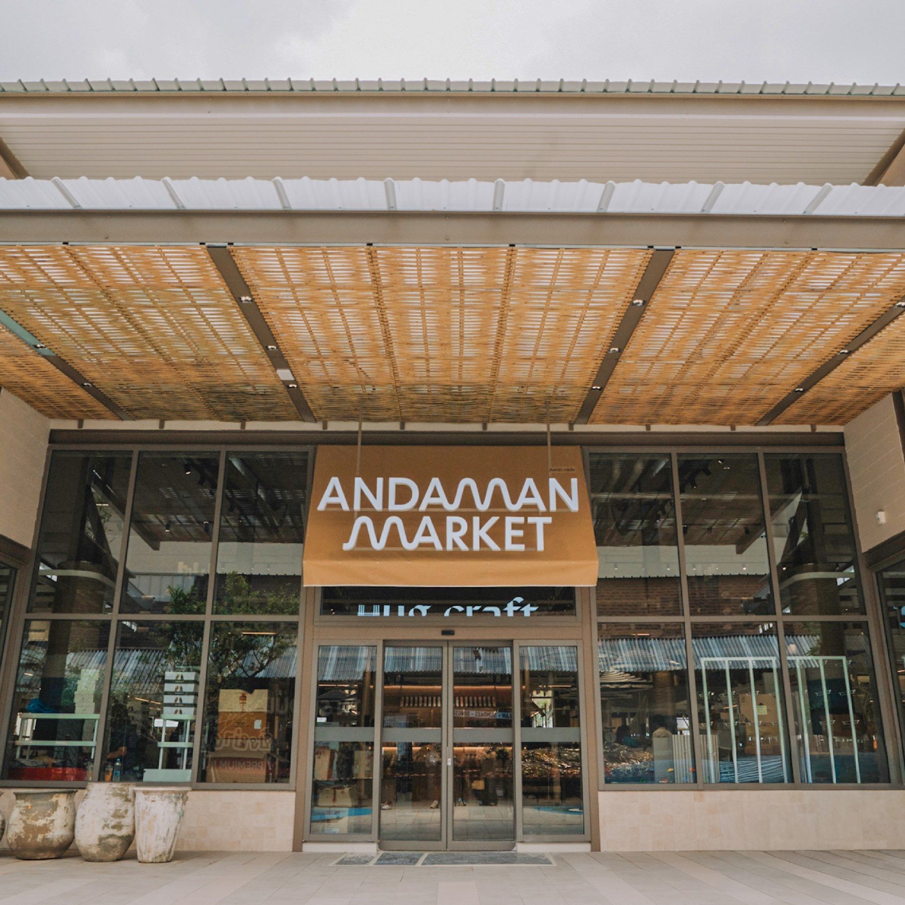 Andaman Market โซนตลาด หลังคาอาคารออกแบบโดยใช้รูปทรง “เรือหัวโทง” พาหนะหลักมนการทำประมง อีกหนึ่งเอกลักษณ์ของจังหวัด นำมาซ้อนกันเป็นเลเยอร์ สะท้อนให้นึกถึงภาพการจอดเรือริมชายหาด