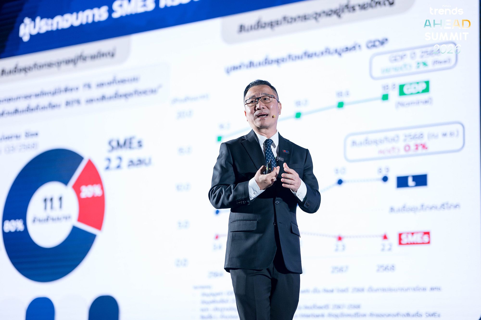• คุณชลัช รัตนบุญนิธิ กรรมการผู้จัดการ EXIM BANK ได้ขึ้นเวทีในหัวข้อ Beyond the Storm, Beyond Borders โดยวิเคราะห์สถานการณ์ภาระหนี้สินที่ผู้ประกอบการไทยแบกรับ พร้อมชี้เป้า "จุดบอด" ที่ทำให้ SMEs ไทยยังไปไม่ถึงตลาดโลก และเน้นย้ำถึงปัจจัยสำคัญอย่างนโยบายของ "โดนัลด์ ทรัมป์" ที่จะส่งผลกระทบต่อการค้าโลก ซึ่งไทยต้องเร่งปรับตัวเพื่อเปลี่ยนบทบาทจากผู้ตั้งรับ เป็น "ผู้ส่งออก" ที่แข็งแกร่ง