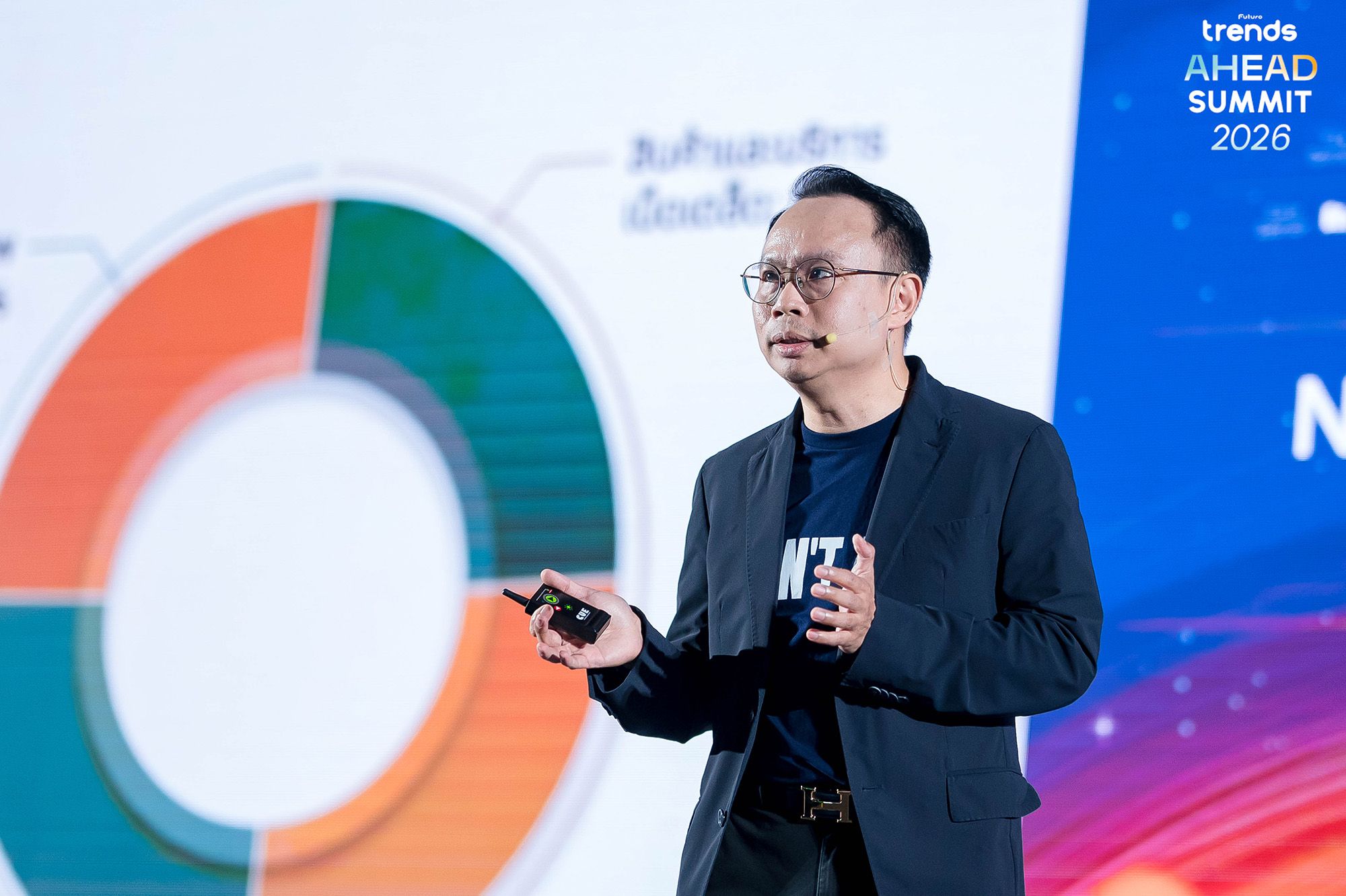 คุณธนโชติ วิสุทธิสมาน ประธานเจ้าหน้าที่บริหาร บริษัท ไลค์ มี จำกัด (Like Me Co., Ltd.) และผู้ก่อตั้ง Future Trends ที่ได้ขึ้นเวทีเพื่อเปิดฉายภาพความจริงที่เจ็บปวดแต่จำเป็นต้องรับรู้ เกี่ยวกับสถานะของประเทศไทยในเวทีโลก