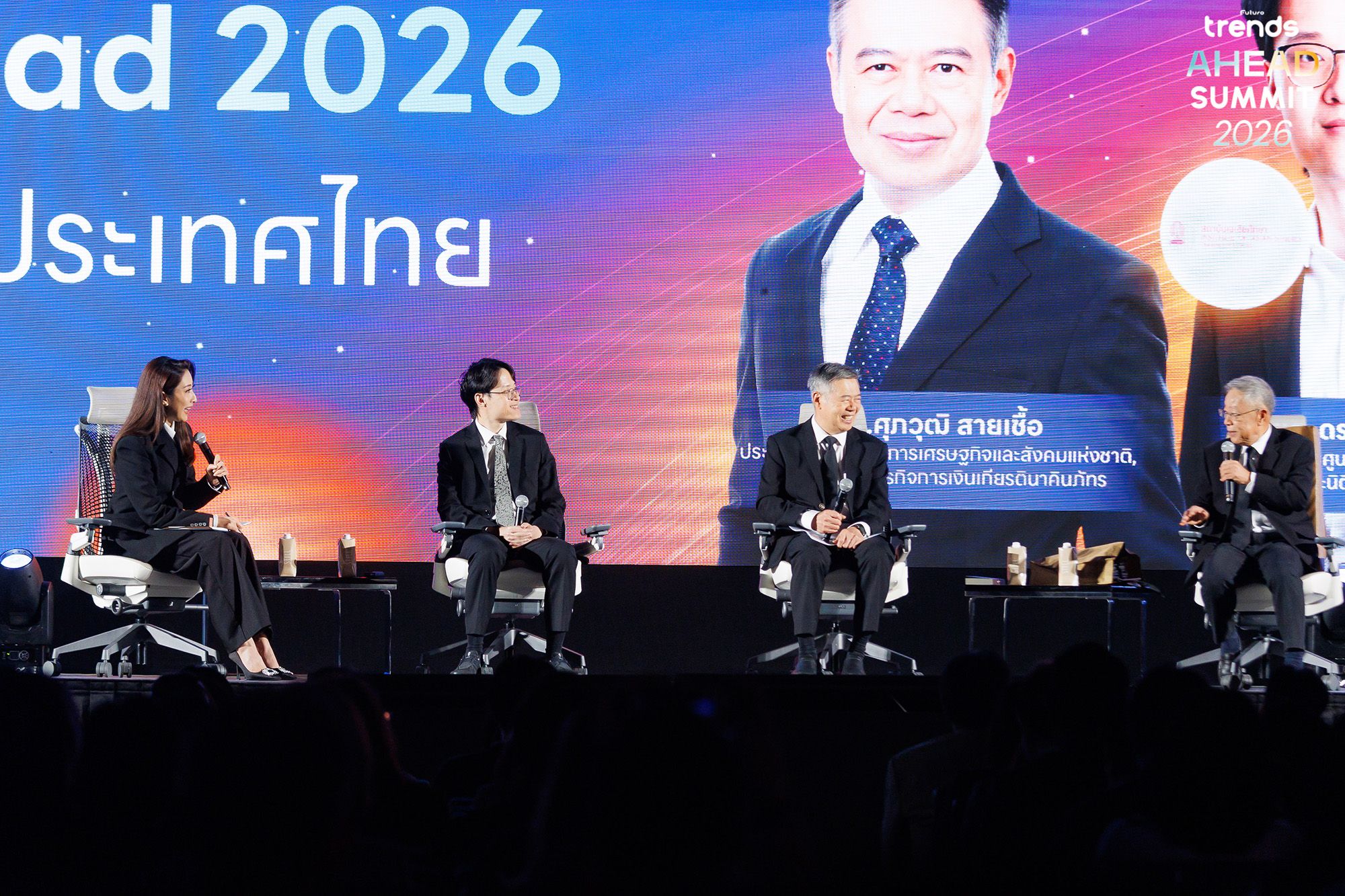 • ดร.ศุภวุฒิ สายเชื้อ (ประธานสภาพัฒน์ฯ) เปิดเวทีคู่กับ คุณอาร์ม ตั้งนิรันดร ด้วยหัวข้อ Thailand Ahead 2026 มอบ Playbook สำหรับการเดินหน้าประเทศไทย ในขณะที่ รศ. ดร.ธนวรรธน์ พลวิชัย (อธิการบดี ม.หอการค้าไทย) เจาะลึก Economic & Commerce Outlook ให้เห็นภาพการค้าที่จะเป็นตัวขับเคลื่อน GDP ในปีหน้า