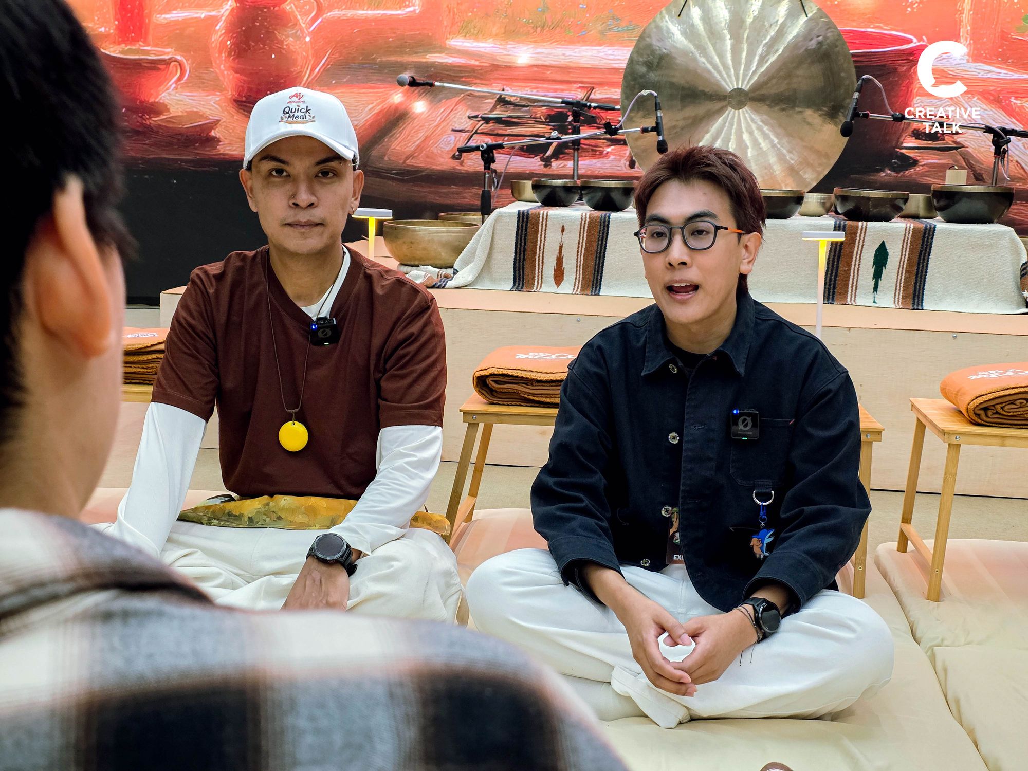 เซสชันที่ 2: เป็นกิจกรรม Sound Bath เปรียบเหมือนการ ‘ปรุงโจ๊ก’ โดยเสียงที่เราจะได้ยินคือเสียงที่ออกแบบมาเพื่องานนี้โดยเฉพาะ เพื่อให้พื้นที่เราได้อยู่กับตัวเองมากขึ้น ตัดเสียงรบกวนภายนอกออกไป แล้วกลับมาฟังเสียงในใจว่าความรู้สึกแบบไหนที่เราอยากปลดปล่อยออกมา เช่น ความกังวลที่เคยซ่อนไว้ ไม่กล้าบอกกับใคร หรือความหนักใจที่มีแล้วอยากวางลง