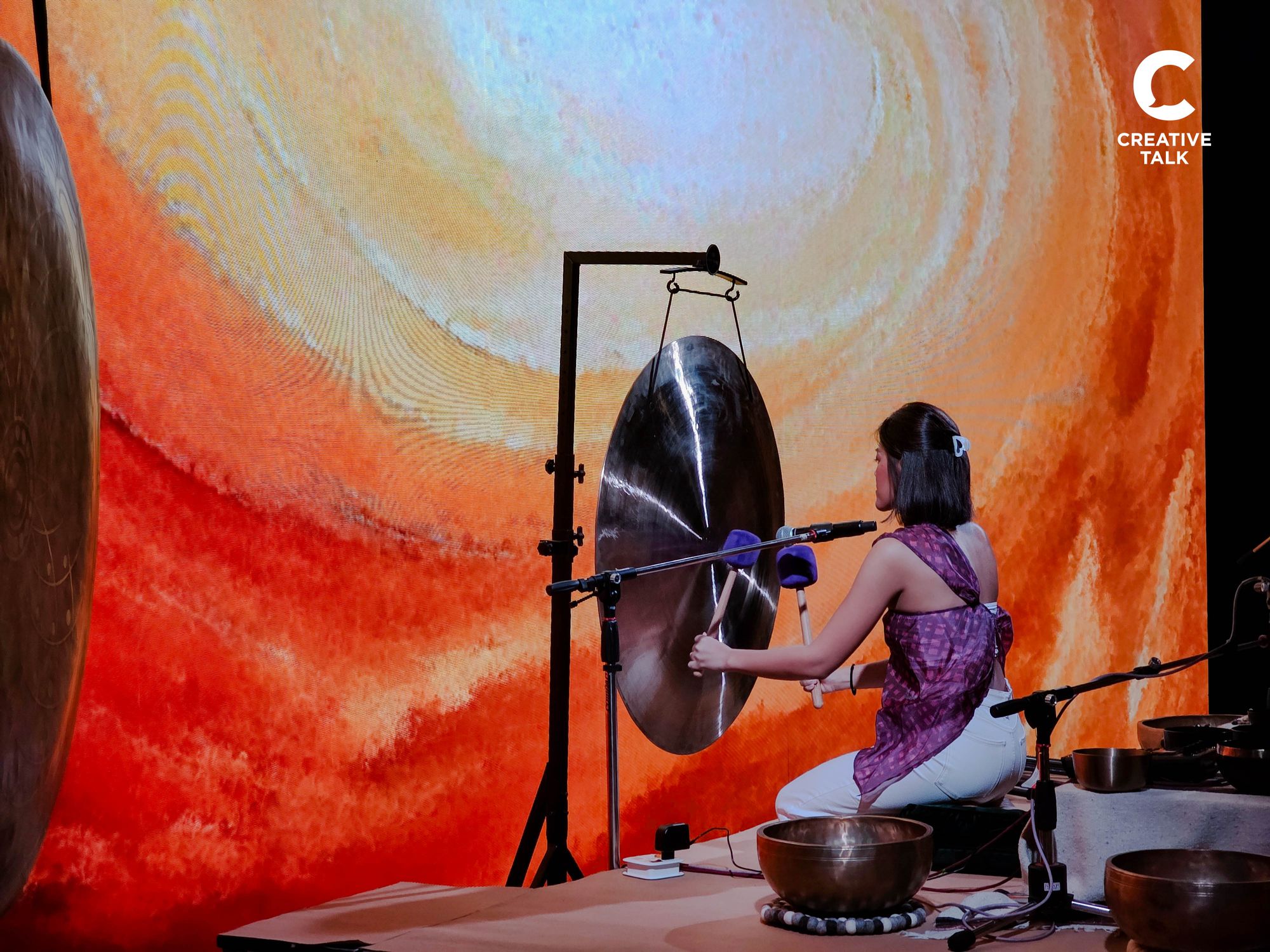 สิ่งสำคัญที่ทำให้ Immersive ครั้งนี้แตกต่าง และโดดเด่น คือการนำ ‘Sound Bath’ มาเป็นส่วนหนึ่งของกิจกรรม เพื่อให้ผู้เข้าร่วมงานได้พักผ่อนอย่างเต็มที่ โดยมีคุณไอซ์ จาก Attuned Studio เป็นผู้ออกแบบประสบการณ์ผ่านเสียงขึ้นมาสำหรับงานนี้เท่านั้น